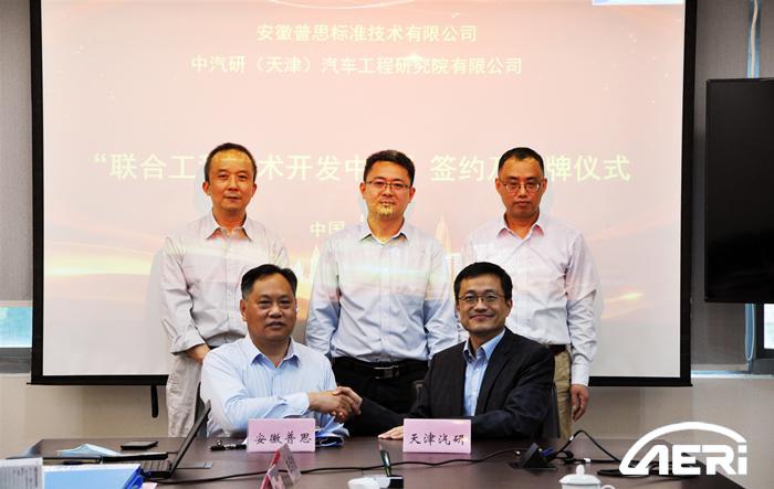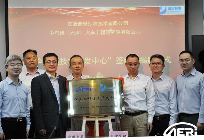 2020年5月8日,中汽研(天津)汽車工程研究院有限公司(以下簡稱“工程院”)與安徽普思標準技術有限公司(以下簡稱“普思標準”)簽署戰略合作協議并舉行“聯合工程技術研發中心”揭牌儀式。奇瑞控股集團有限公司常務副總經理李從山,安徽省經濟和信息化廳汽車工業處處長馬翠兵,蕪湖國家科技創新中心副總經理張勇,普思標準總經理朱志保,工程院黨委書記、院長高繼東,第七開發部主任朱仲文,以及普思標準和工程院相關領導出席簽約儀式。