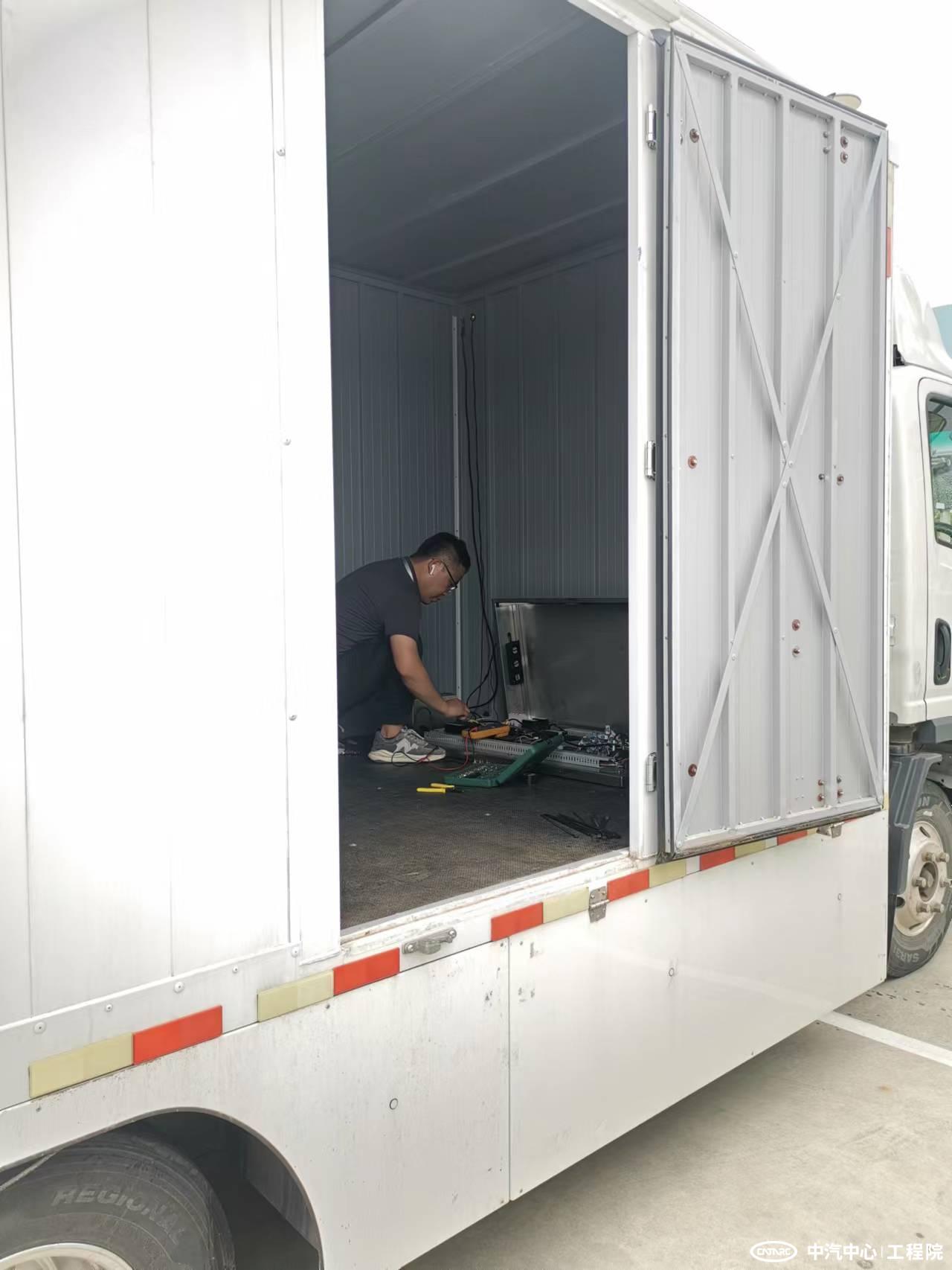 夏海鵬在悶熱的車廂內調試硬件