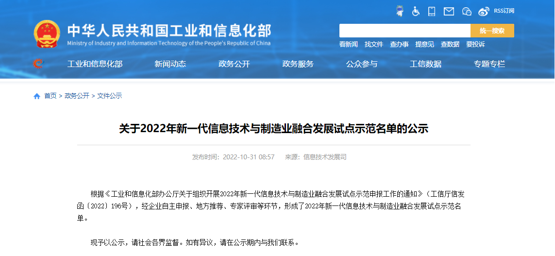 為推動新一代信息技術(shù)與制造業(yè)全要素、全產(chǎn)業(yè)鏈、全價值鏈深度融合,加快制造業(yè)技術(shù)、模式、業(yè)態(tài)等創(chuàng)新和應用,按照《關(guān)于深化新一代信息技術(shù)與制造業(yè)融合發(fā)展的指導意見》相關(guān)要求,工業(yè)和信息化部于2022年8月組織開展2022年新一代信息技術(shù)與制造業(yè)融合發(fā)展試點示范申報工作。(工信廳信發(fā)函 ﹝2022﹞ 196號)