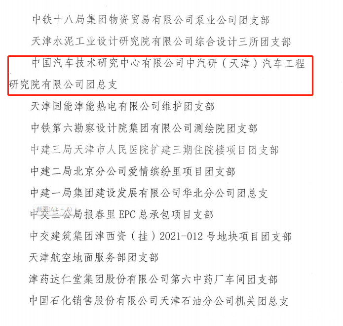 【五四青年節】中汽中心工程院團總支榮獲天津市五四紅旗團支部榮譽稱號!
