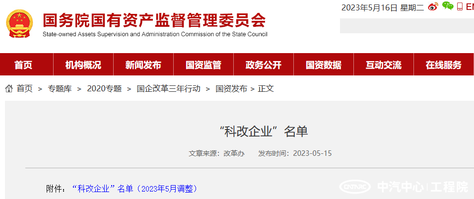 中汽中心工程院成功入選國資委“科改示范企業”名單
