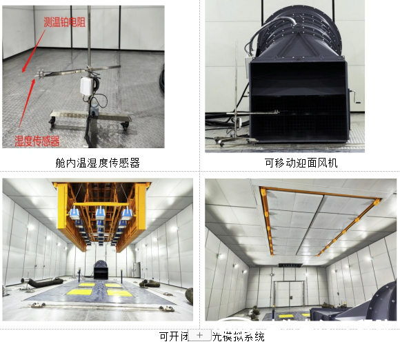 本試驗室除傳統的高性能氣候環境模擬模式還具有獨特的靜音氣候環境模擬模式,除了滿足傳統整車經濟性能、動力性能和環境模擬測試;靜音氣候環境模擬模式可用于各種動態環境下的NVH性能測試,迎面風機配有電動車輪可簡單方便移出試驗艙,陽光模擬設備隱匿在試驗室中,即迎面風機和全光譜設備均不在半消聲室試驗室的 范圍內,此模式滿足半消聲室的要求。