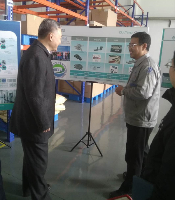 2018年3月6日,東麗區(qū)區(qū)委書記尚斌義,區(qū)委常委、區(qū)委辦主任劉克強,東麗開發(fā)區(qū)管委會黨工委書記宋立夫、東麗開發(fā)區(qū)管委會副主任張若翔等一行參觀考察科創(chuàng)園孵化項目天津大創(chuàng)科技有限公司,汽車工程研究院總工程師李洪亮博士、研發(fā)創(chuàng)新平臺辦公室主任、科創(chuàng)園常務(wù)副總經(jīng)理李振國博士、天津大創(chuàng)科技有限公司總經(jīng)理牟江峰陪同。