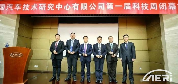 在科技周閉幕式上,工程院為科技周做出的貢獻受到中汽中心表彰,集體和協助策劃人員分別獲得“技術創新先進集體”和“第一屆科技周策劃先進個人”稱號。