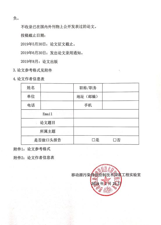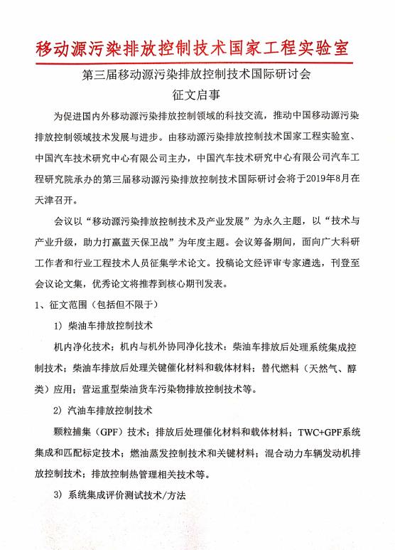 第三屆移動源污染排放控制技術國際研討會征文啟事