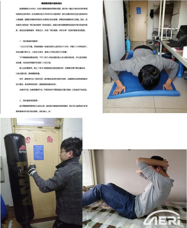 隨著部門員工陸續(xù)返津,按照疫情防控的總體要求,要自返津日起進(jìn)行自我居家隔離14天才可返工。在居家隔離的這段時間里,進(jìn)行適當(dāng)?shù)纳眢w鍛煉,對于保持身心健康,提高自身免疫力有著至關(guān)重要的作用。第一團(tuán)支部特制定并在全部門內(nèi)發(fā)布了隔離期間居家健身倡議。倡議中不僅包含適宜在室內(nèi)進(jìn)行的鍛煉方式示例,還包括適宜健身的時間段建議。倡議發(fā)布以來,得到了團(tuán)員青年們的積極響應(yīng),大家紛紛上傳自己的健身小視頻,交流鍛煉感想,為順利返工做好身體和心理的雙重準(zhǔn)備。