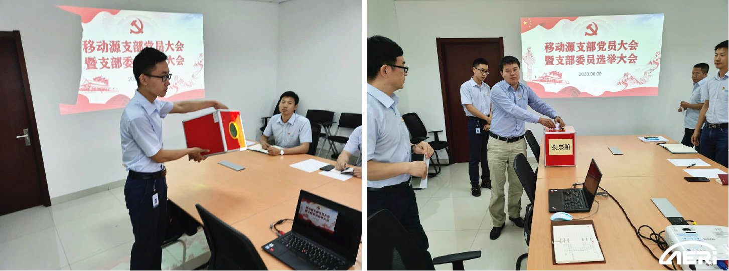 2020年6月9日下午,工程院黨委移動源支部召開黨員大會,選舉產生支部委員會。會議由李振國同志主持,工程院黨委委員戎輝列席、全體黨員參加會議。
