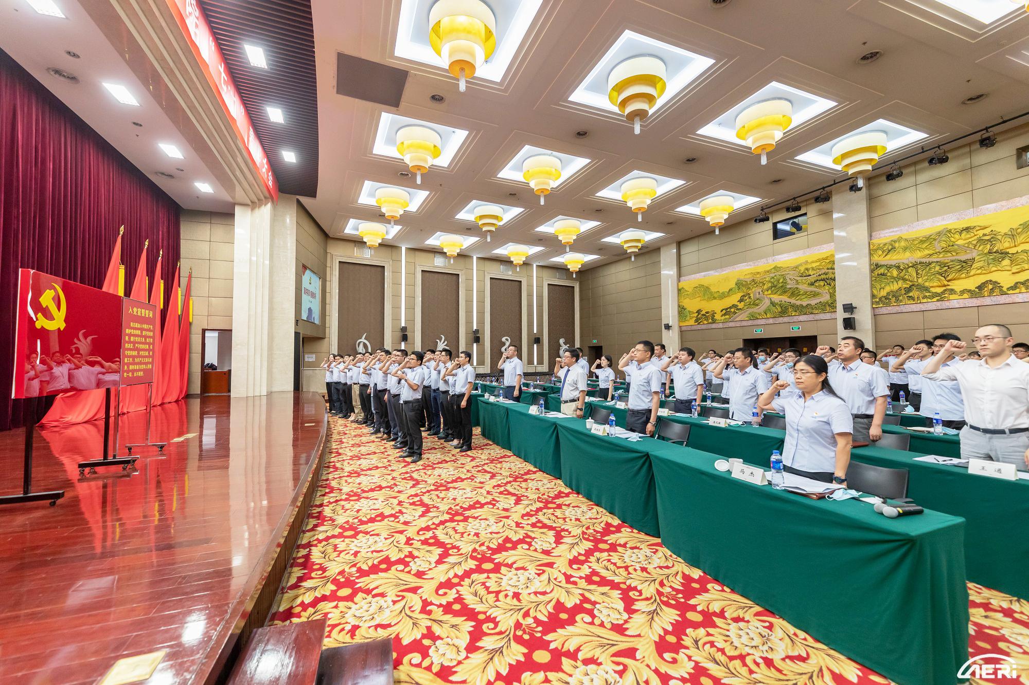 “我志愿加入中國共產黨,擁護黨的綱領,遵守黨的章程,履行黨員義務……”錚錚誓言,初心所向,會上,全體參會黨員起立,重溫入黨這一神圣時刻。