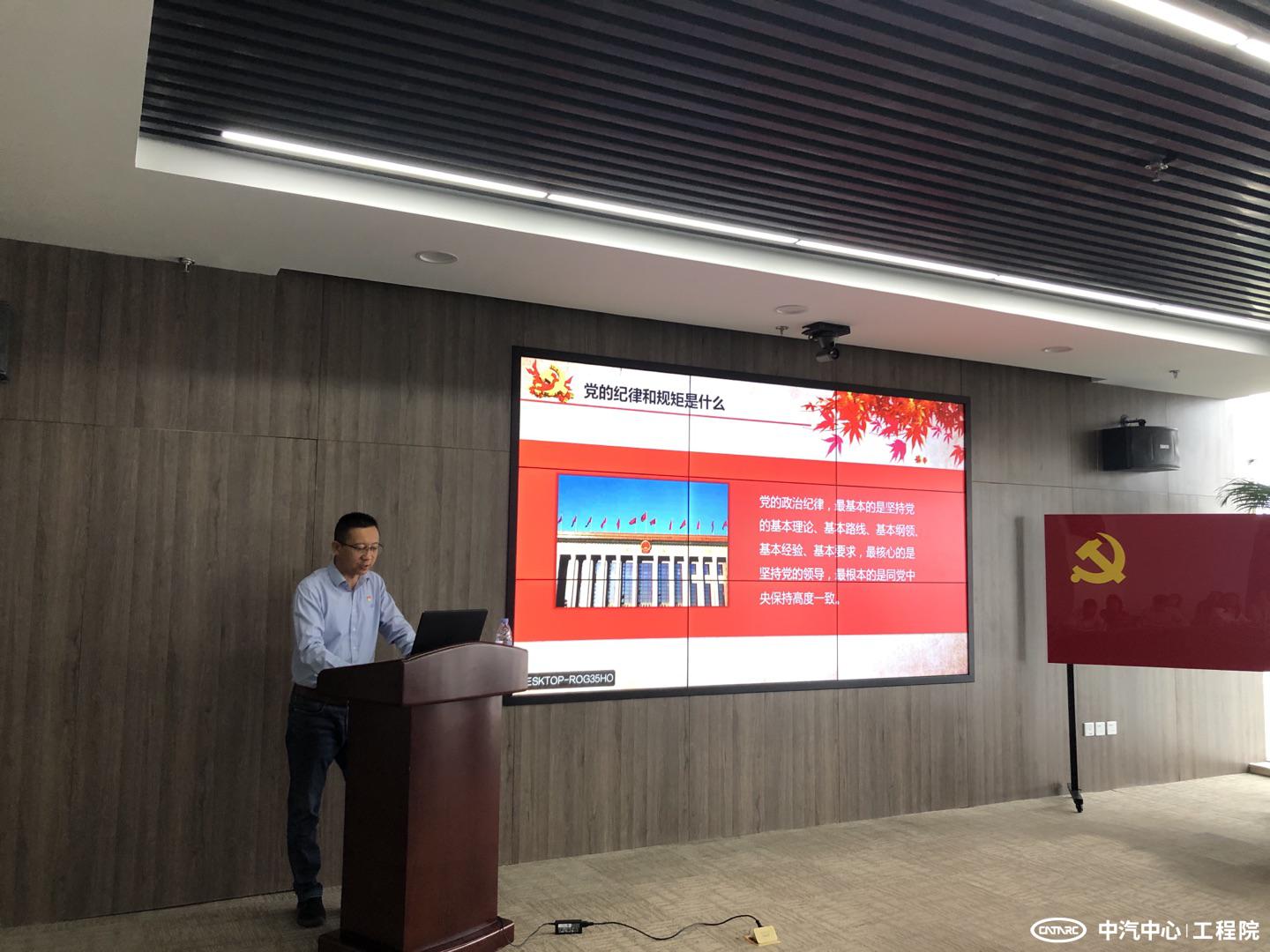 為進一步加強紀律教育,增強黨員干部職工黨規黨紀意識,筑牢紀律底線,2020年9月14日上午,工程院紀委委員王新宇到職能支部講授專題黨課,主題為“守紀律講規矩,做新時代合格黨員”,職能支部全體在津黨員、入黨積極分子及入黨申請人參加了本次黨課。