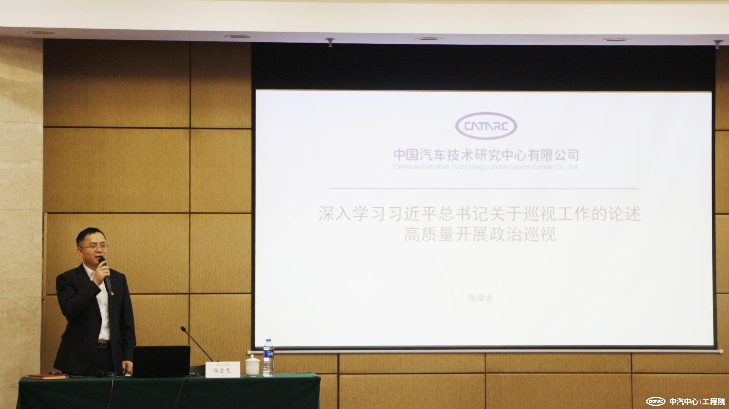 陶金龍同志以“深入學習習近平總書記關于巡視工作的論述,高質量開展政治巡視”為題,從巡視工作的發展歷程、習近平總書記關于政治巡視的重要論述、如何深入理解政治巡視內涵、國資委黨委巡視發現的共性問題以及中汽中心黨委巡視發現的典型問題共五個方面,深入淺出、系統全面地講解了巡視工作作為加強黨的建設重要舉措、從嚴治黨的重要手段、黨內政治監督的重要形式的意義。同時強調,政治巡視不是抽象的,而是現實的、具體的,并通過各級巡視工作中發現的具體典型共性問題,讓與會人員更加深刻理解和切身領會巡視監督所發揮的“利劍”作用。
